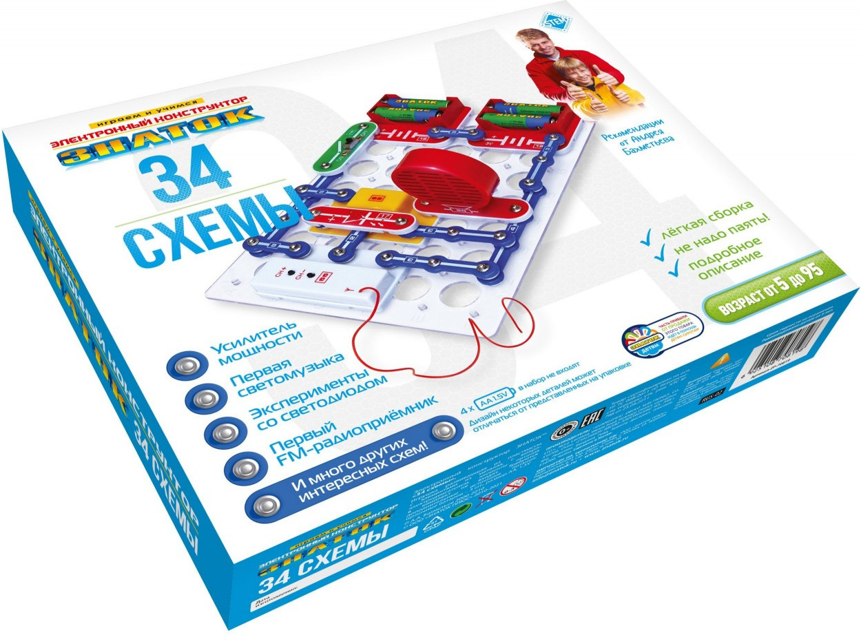 💳 Оплатить за товар можно при получении 🇰🇿 Есть бесплатная доставка по Казахстану 🎁 Копите бонусы с каждой покупки Вам будет предложено собрать свой первый FM-радиоприёмник, узнать, что такое усилитель мощности, познакомится со светомузыкой — всего 34 разных проекта, наглядно показывающих принципы работы простейших электронных устройств. Для того чтобы ребенок научился не просто собирать электрические схемы, а задумывался над собранным проектом, в наборе вы найдете комментарии с пояснениями и задания на быстрое усвоение важных знаний по физике. |