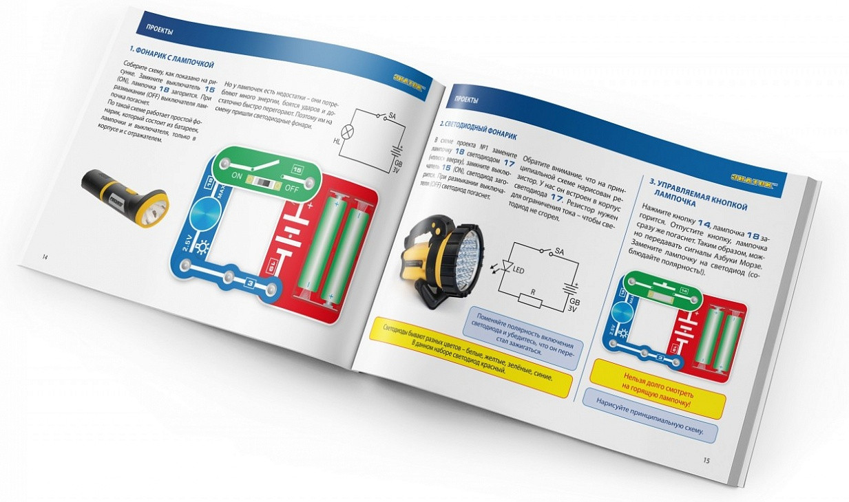 💳 Оплатить за товар можно при получении 🇰🇿 Есть бесплатная доставка по Казахстану от 1 дня 🎁 Копите бонусы с каждой покупки Электронный конструктор начального уровня, позволяющий ребёнку познакомиться с удивительным миром электроники. Даже без помощи взрослых, используя только очень понятное цветное руководство, всего за несколько минут, он или она смогут собрать одну из 69 схем, на которые родители 10 лет назад тратили целые недели. Это отличное подспорье в изучении школьной программы по физике. Многие схемы имеют практическое применение. |