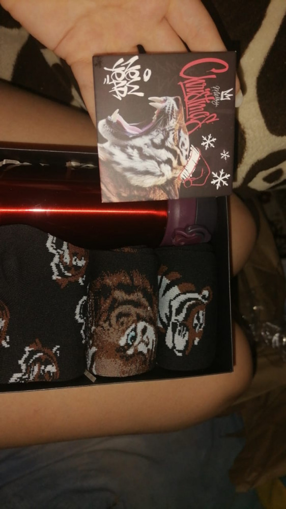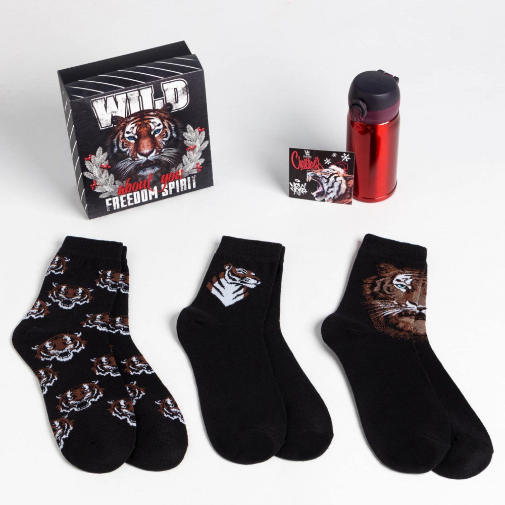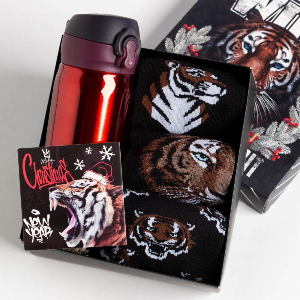 В комплекте: термос 250 мл, носки — 3 пары, открытка.