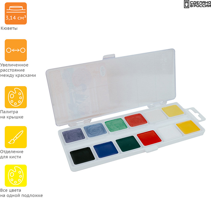 💳 Оплатить за товар можно при получении 🇰🇿 Есть бесплатная доставка по Казахстану от 1 дня 🎁 Копите бонусы с каждой покупки Серия: Оранжевое солнце Медовая акварель «Оранжевое солнце» имеет расширенную палитру цветов, включающую классические цвета и цвета с различными эффектами. В наборе: 6 классических и 6 перламутровых цветов. «Волшебные» цвета дают возможность проявить фантазию и создать любой сказочный сюжет. Краски нетоксичны, легко смываются с рук и отстирывается с одежды, хорошо смешиваются. Кюветы с высокими бортиками и увеличенным расстоянием между красками предназначены для удобства в работе детей. Палитра для смешивания красок расположена на крышке. |