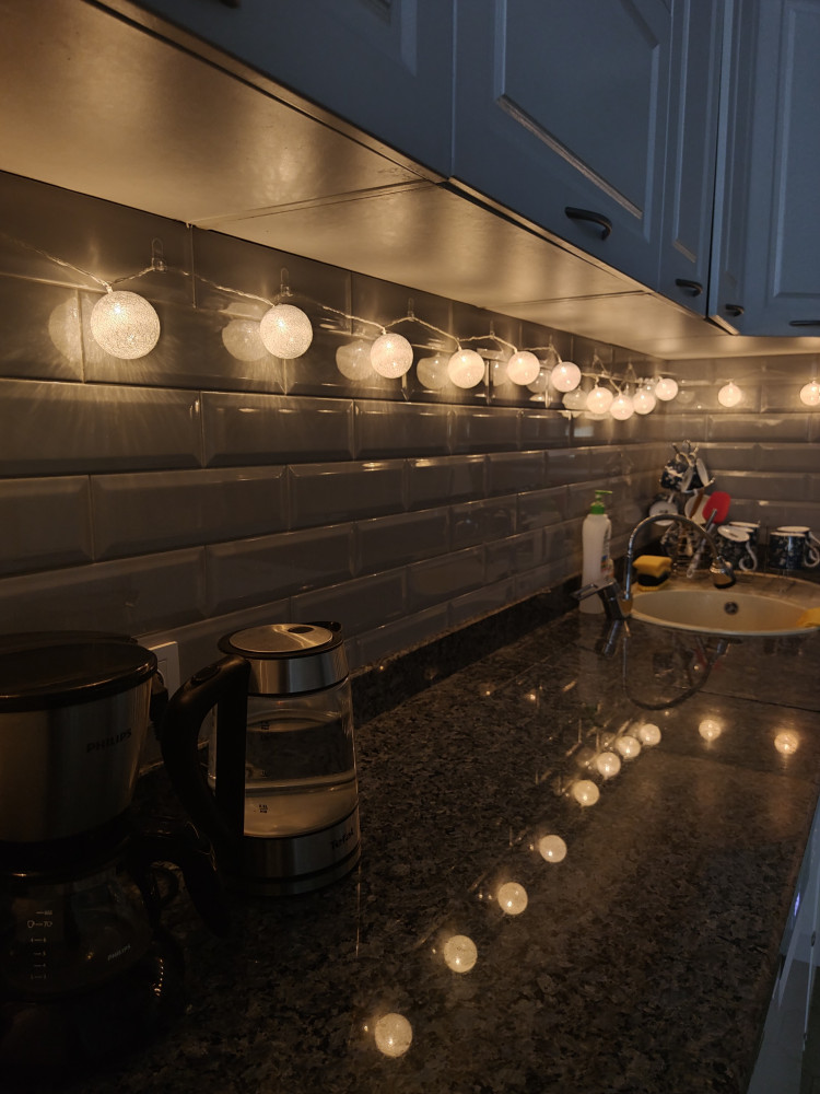 красивая гирлянда. но шары все время слетают с гирлянды. пришлось приклеивать