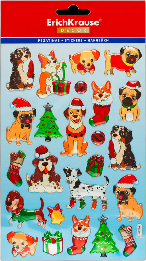 Erich Krause Набор наклеек «Новогодние собачки»В данный момент этот товар отсутствует в продаже. Возможно, у нас найдется аналогичный или похожий товар здесь. Набор состоит из небольших фольгированных наклеек с изображениями собак разных пород. Наклейки объемные, имеют рельефную текстуру. Подходят для украшения открыток, подарков и прочих творческих работ. |