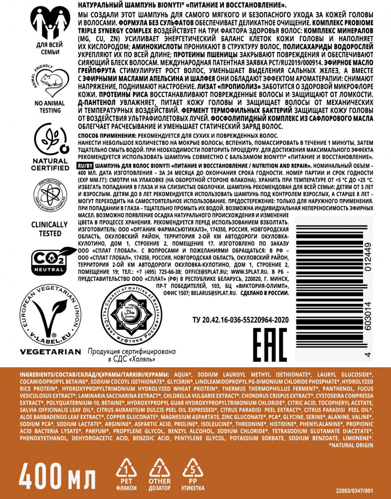 Красота и здоровье » Натуральная косметика » Уход и гигиена » Уход за волосами » Шампуни
