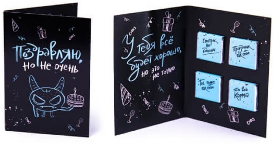 Фуд Сторис Открытка с шоколадом «Поздравляю, но не очень»В данный момент этот товар отсутствует в продаже. Возможно, у нас найдется аналогичный или похожий товар здесь. Долой банальные подарки на день рождения. Щепотка чёрного юмора украсит любой праздник. Такой сувенир подойдёт для человека любого возраста, главное, чтобы он умел улыбаться. |