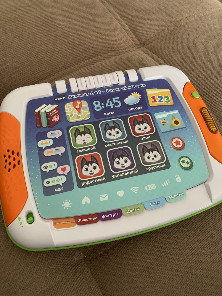 💳 Оплатить за товар можно при получении 🇰🇿 Есть бесплатная доставка по Казахстану от 1 дня 🎁 Копите бонусы с каждой покупки Планшет-книга Vtech 2 в 1 — это обучающий электронный гаджет для малышей от 2 лет. Планшет двухсторонний, и обе его стороны интерактивны. С одной стороны планшета малыш обучается, играет и слушает разные мелодии, но, стоит перевернуть игрушку — планшет для занятий превращается в книгу сказок. Двойное удовольствие от игры! На каждой сенсорной и интерактивной странице ребенок получает доступ к широкому спектру образовательных материалов, следит за приключениями щенков и открывает для себя: цифры, формы, слова-антонимы, животных, эмоции и многое другое! 2 способа игры в сюжетном режиме, чтобы развить навыки наблюдения и дедукции и научиться читать. 12 страниц познавательных занятий и историй с весёлыми щенками! |