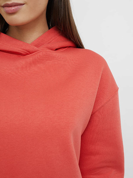 Красивый, качественный свитшот. Размер соответствует. Цвет красивый, приглушённый коралловый. Но на рост 170 он короткий. Скорее всего рост модели 164.