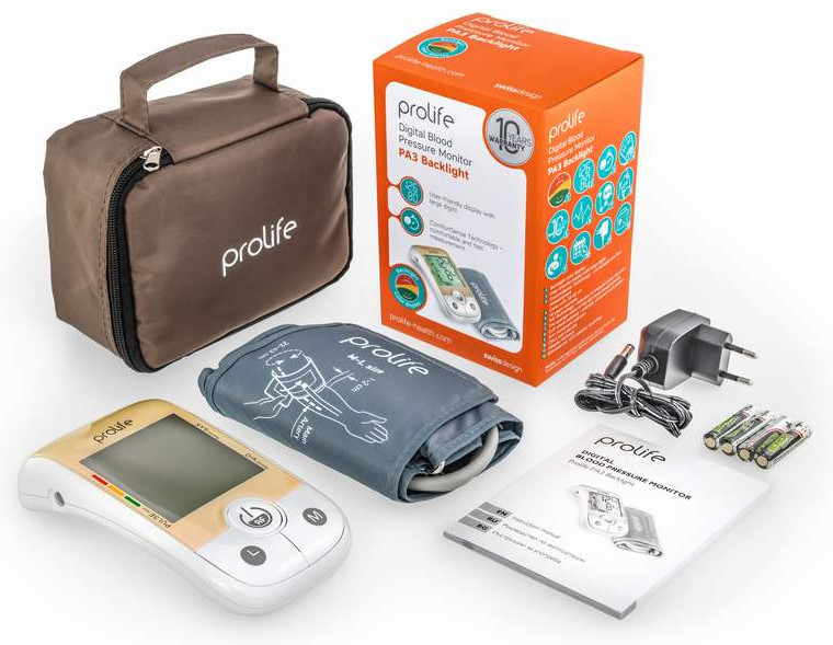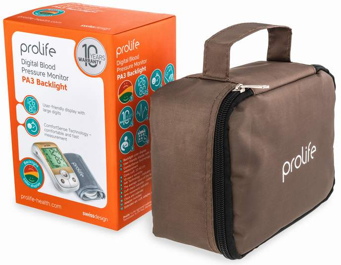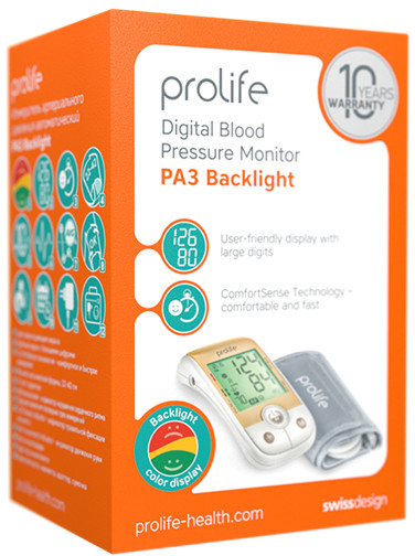 Prolife PA3 Backlight — автоматический тонометр для измерения давления и пульса, оснащен современными технологиями AFIB (AF) и Comfort Sense. Благодаря этому прибор позволяют не только измерять артериальное давление, но и контролировать состояние здоровья сердца: тонометр выявляет мерцательную аритмию, одну из главных причин инсульта, и своевременно сигнализирует об этом! Процесс измерения давления персонализирован: тонометр изменяет силу сдавливания и интенсивность накачивания манжеты, адаптируя ее под каждого пользователя. Цветная индикация дисплея помогает оперативно интерпретировать полученное значение.