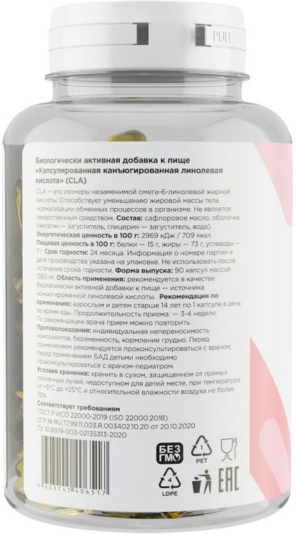 💳 Оплатить за товар можно при получении 🇰🇿 Есть бесплатная доставка по Казахстану от 1 дня 🎁 Копите бонусы с каждой покупки Конъюгированная линолевая кислота (CLA) — изомеры незаменимой Омега-6 линолевой жирной кислоты, известные своими жиросжигающими свойствами. |