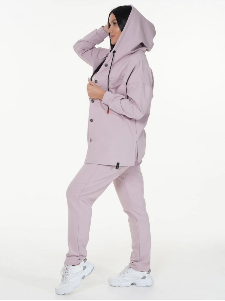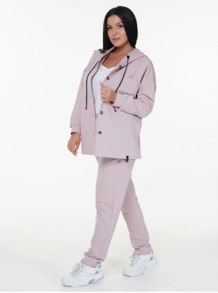 Пудровый цвет костюма красиво смотрится, практичный, не мнется, стильный