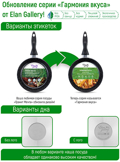 Elan Gallery Сковорода глубокая «Черный мрамор»-30% +109