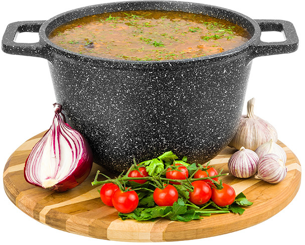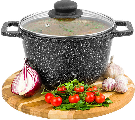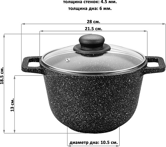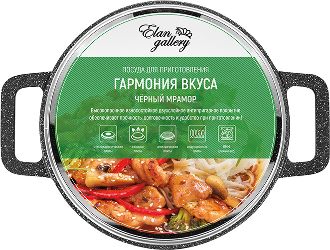 Elan Gallery Казан с крышкой «Черный мрамор»В данный момент этот товар отсутствует в продаже. Возможно, у нас найдется аналогичный или похожий товар здесь. Серия: Гармония вкуса Казан объемом 3 литра «Гармония вкуса» с крышкой изготовлен из литого алюминия в России и имеет ультрапрочное двухслойное антипригарное покрытие. Главное преимущество покрытия — устойчивость к царапинам и износу. Покрытие безопасно для человека и не содержит PFOA или других вредных веществ. Не нагревать без продуктов. Дайте посуде остыть, прежде чем помещать ее в воду. Использовать только деревянные и силиконовые приборы. Не мыть с применением абразивных или щелочных моющих средств. Использовать в посудомоечной машине только в режиме «Эко». Можно использовать в духовом шкафу без крышки при температуре до 250 градусов. |