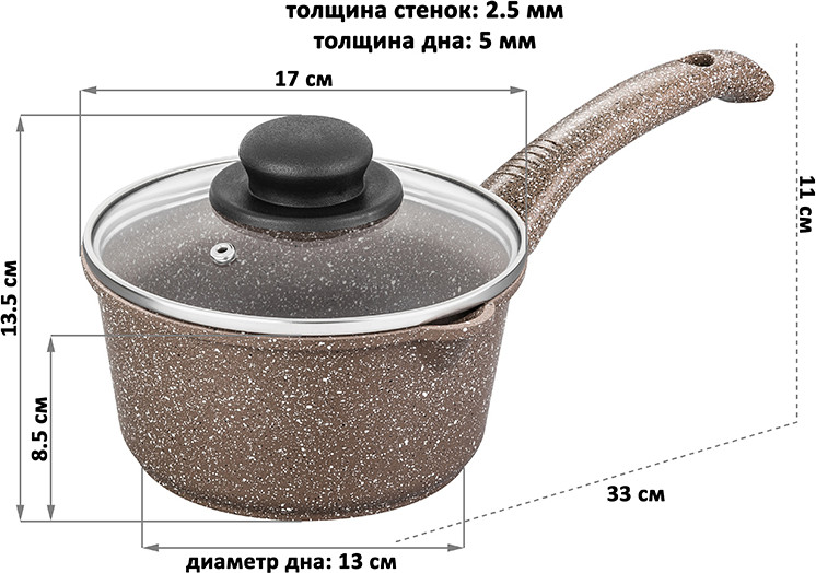 Elan Gallery Ковш с крышкой «Коричневый мрамор»В данный момент этот товар отсутствует в продаже. Возможно, у нас найдется аналогичный или похожий товар здесь. Серия: Гармония вкуса Ковш объемом 1,4 литра серии «Гармония вкуса» с крышкой позволит готовить здоровую пищу без пригорания. Выполнен из лучших материалов и разработан специально для вашего удобства: обладает антипригарным покрытием, имеет эргономичную форму. Изготовлен из литого алюминия в России. Антипригарное покрытие Duramax полностью безопасно: не содержит PFOA, свинца, кадмия и любых других вредных веществ. Загрязнения на ковше после готовки отмываются без усилий. Не нагревать без продуктов. Дайте посуде остыть, прежде чем помещать ее в воду. Использовать только деревянные и силиконовые лопатки. Не мыть с применением абразивных моющих средств. Использовать в посудомоечной машине только в режиме «Эко». Не использовать в духовом шкафу. При соблюдении всех рекомендаций ковш с антипригарным покрытием гарантирует комфорт и легкость в эксплуатации! |