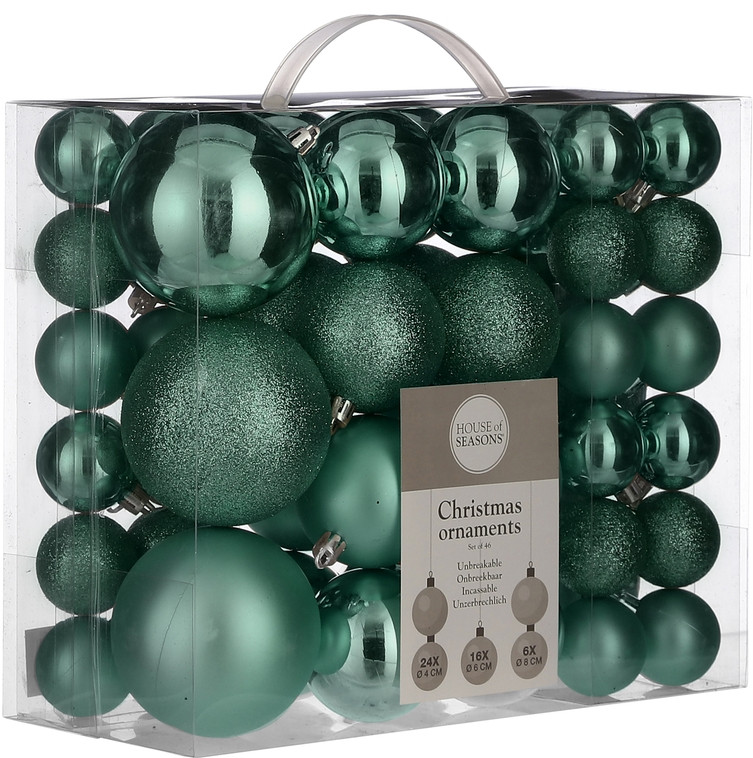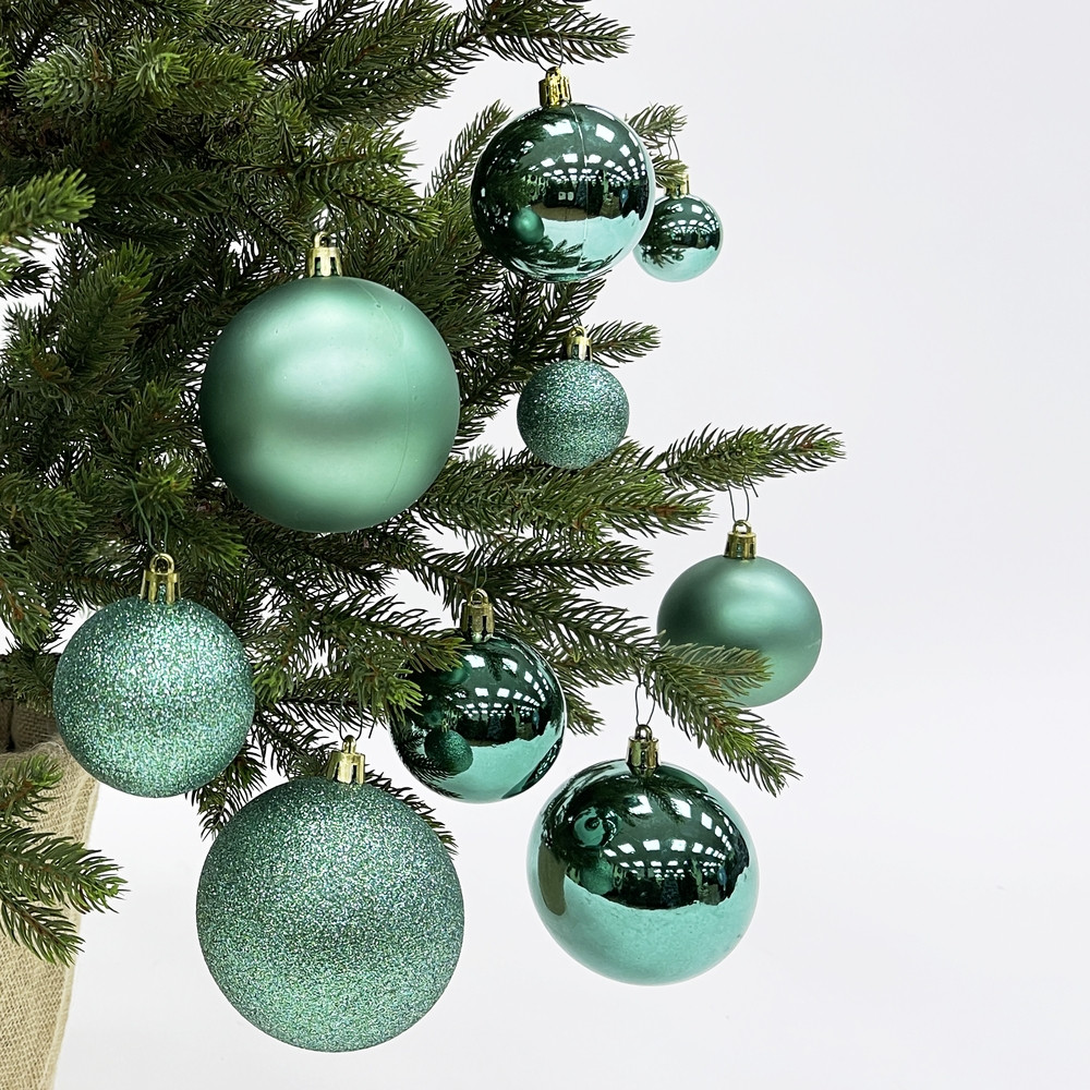 Очень красивые шары, жаль, что достался только один набор. Мало! Набор большой, разные размеры шаров, что очень удобно и стильно смотрится на елке. Елку средней высоты вполне можно нарядить одним набором. Но у меня высокая, хочется еще)