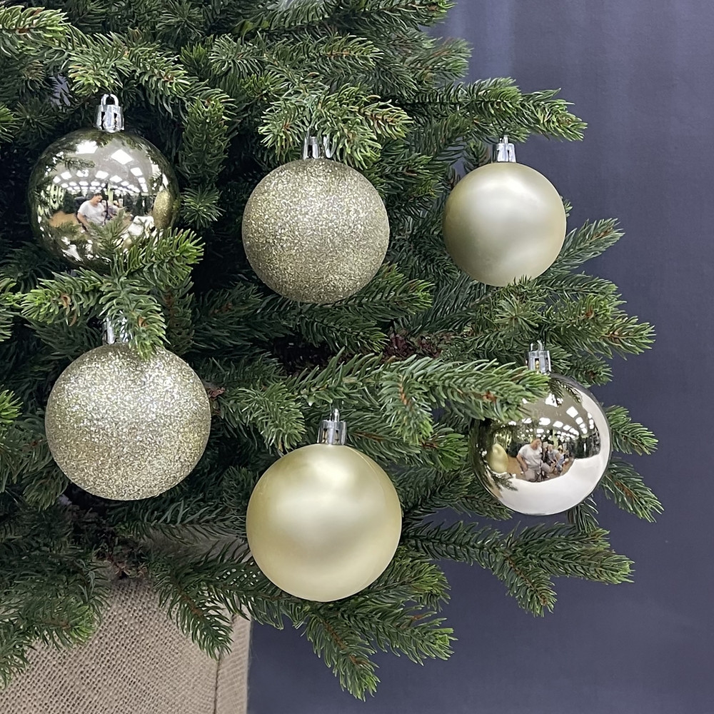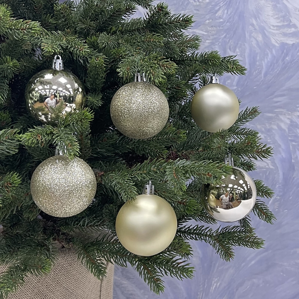 не одинаковое количество по расцветке. шаров с блёстками всего 6 штук, глянцевых и матовых по 12