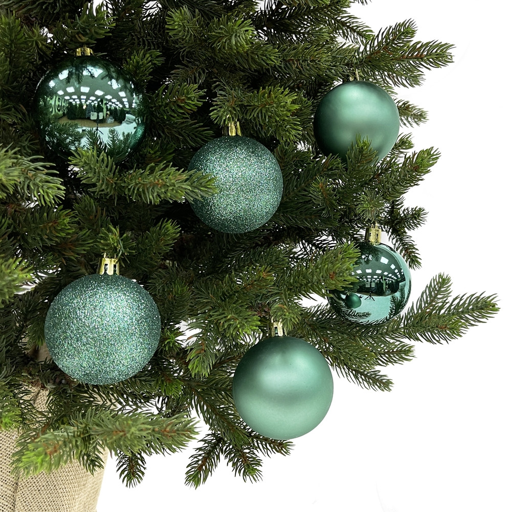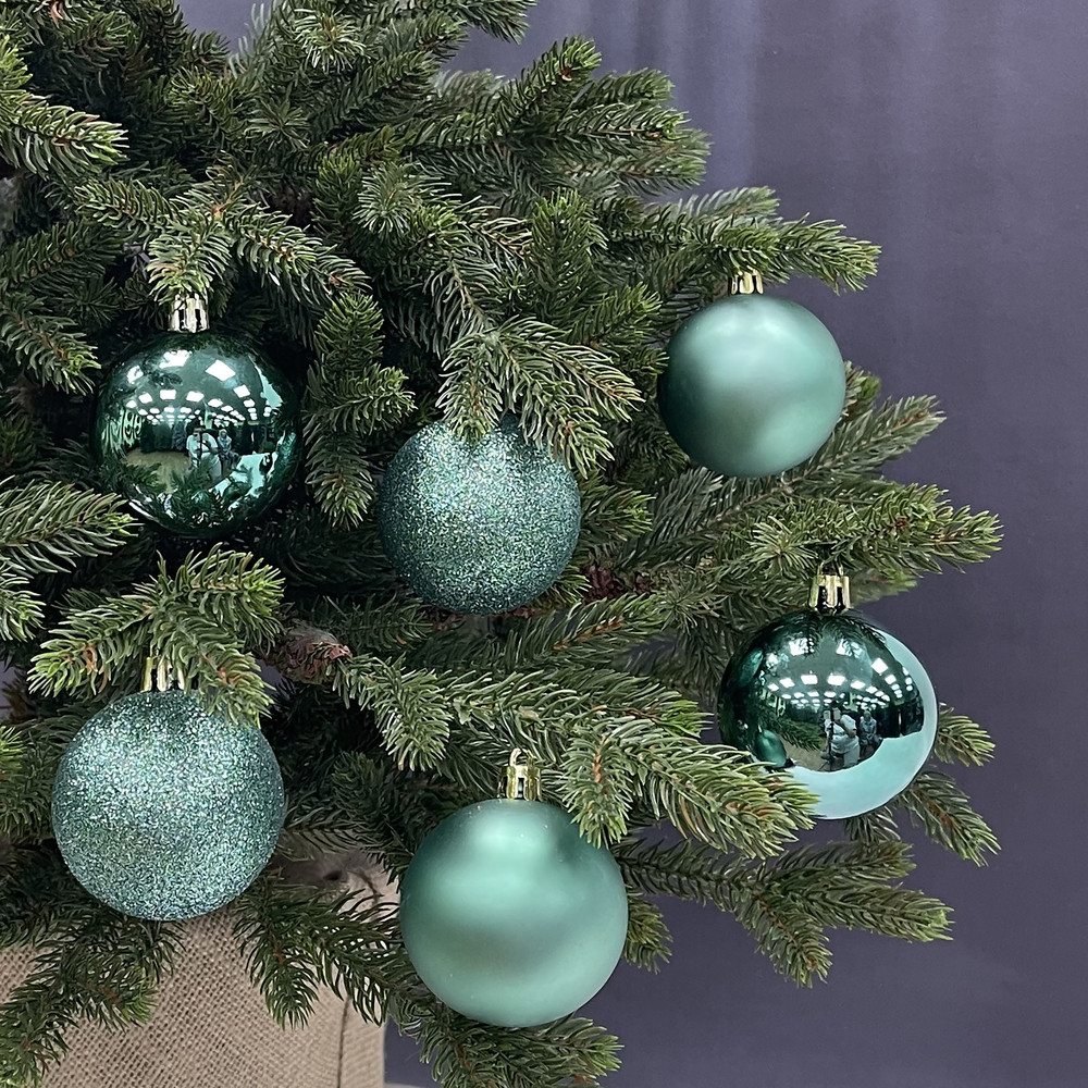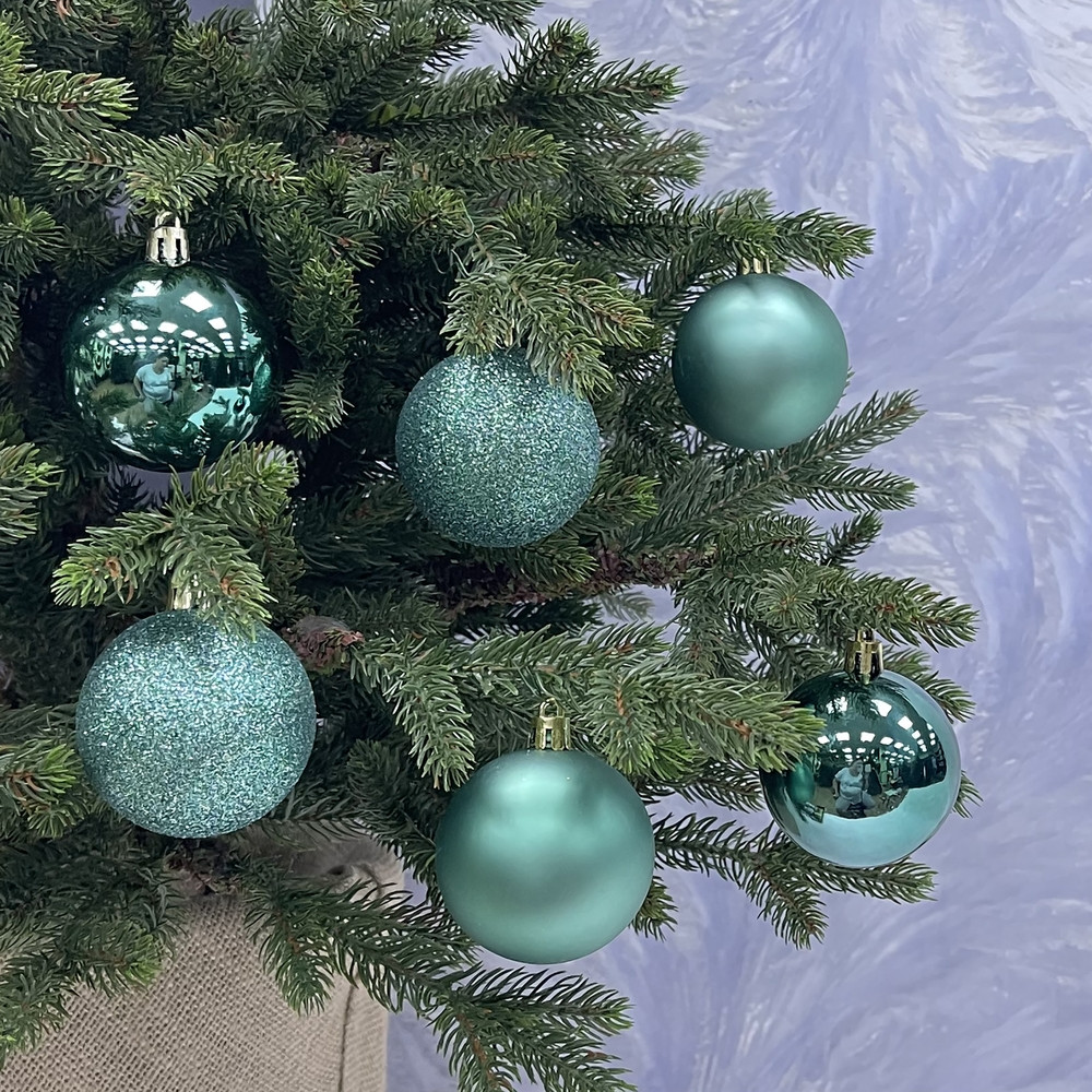 не одинаковое количество по расцветке. шаров с блёстками всего 6 штук, глянцевых и матовых по 12