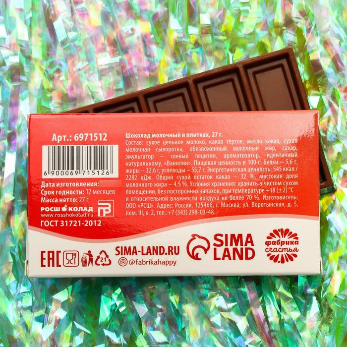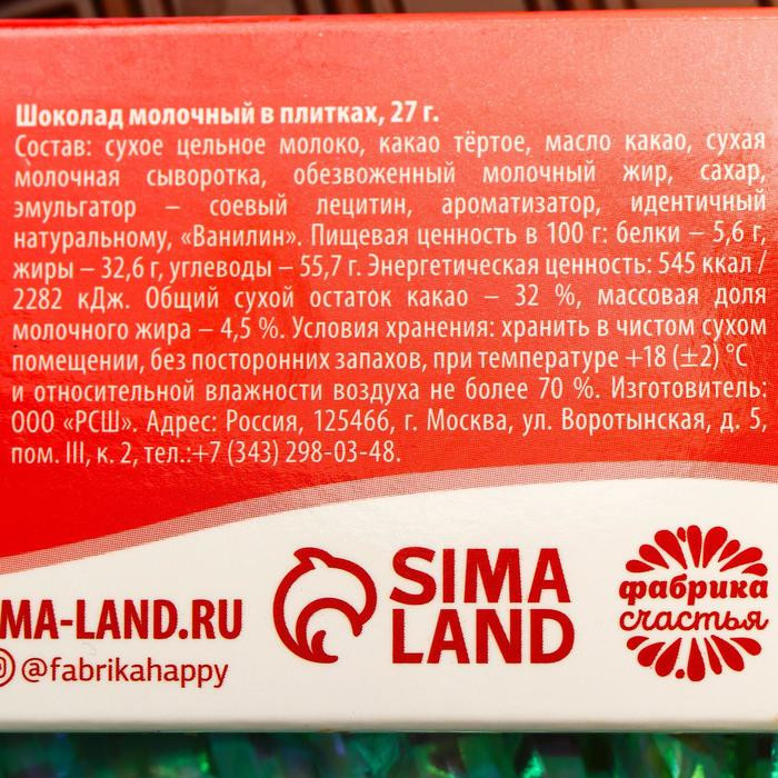Фабрика счастья Шоколад молочный «Антипохмелин»В данный момент этот товар отсутствует в продаже. Возможно, у нас найдется аналогичный или похожий товар здесь. Серия: Новый год Шоколадные поздравления для Новогоднего настроения! Подарок наполненный Новогодним волшебством и вкусным шоколадом! |