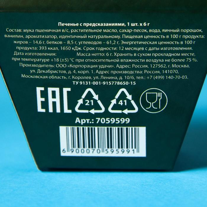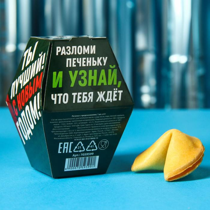 Фабрика счастья Печенье с предсказанием «Моему Деду Морозу»В данный момент этот товар отсутствует в продаже. Возможно, у нас найдется аналогичный или похожий товар здесь. Серия: Новый год Это печенье представляет собой небольшое хрустящее лакомство, в котором запечен листочек с предсказанием. Печенье может стать не только вкусным десертом, но и отличным вариантом подарка близкому человеку. Он обязательно оценит неординарный подход, а оригинальная надпись-сюрприз оставит после себя массу положительных эмоций! |