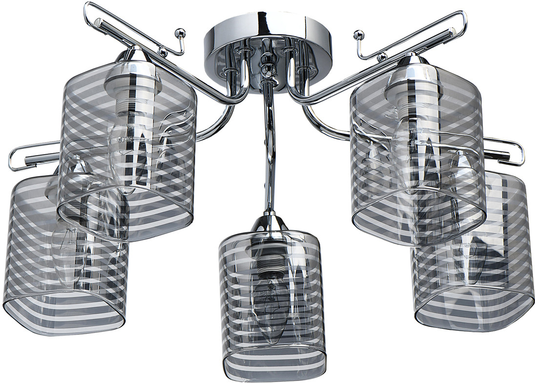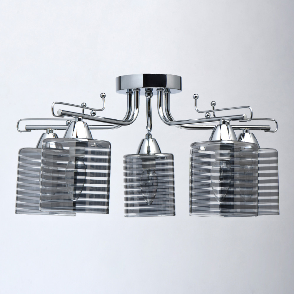 Серия: Олимпия Геометрический дизайн декора рожков и плафонов актуален для современных интерьеров. Плафон в полоску является трендом сезона. Компактная высота светильника актуальна для стандартной высоты потолка. Заменяемые источники света удобны в эксплуатации. Металлическое основание гальванизировано в цвет хрома. Стеклянные плафоны гальванизированы в дымчатый цвет по трафарету в полоску. |