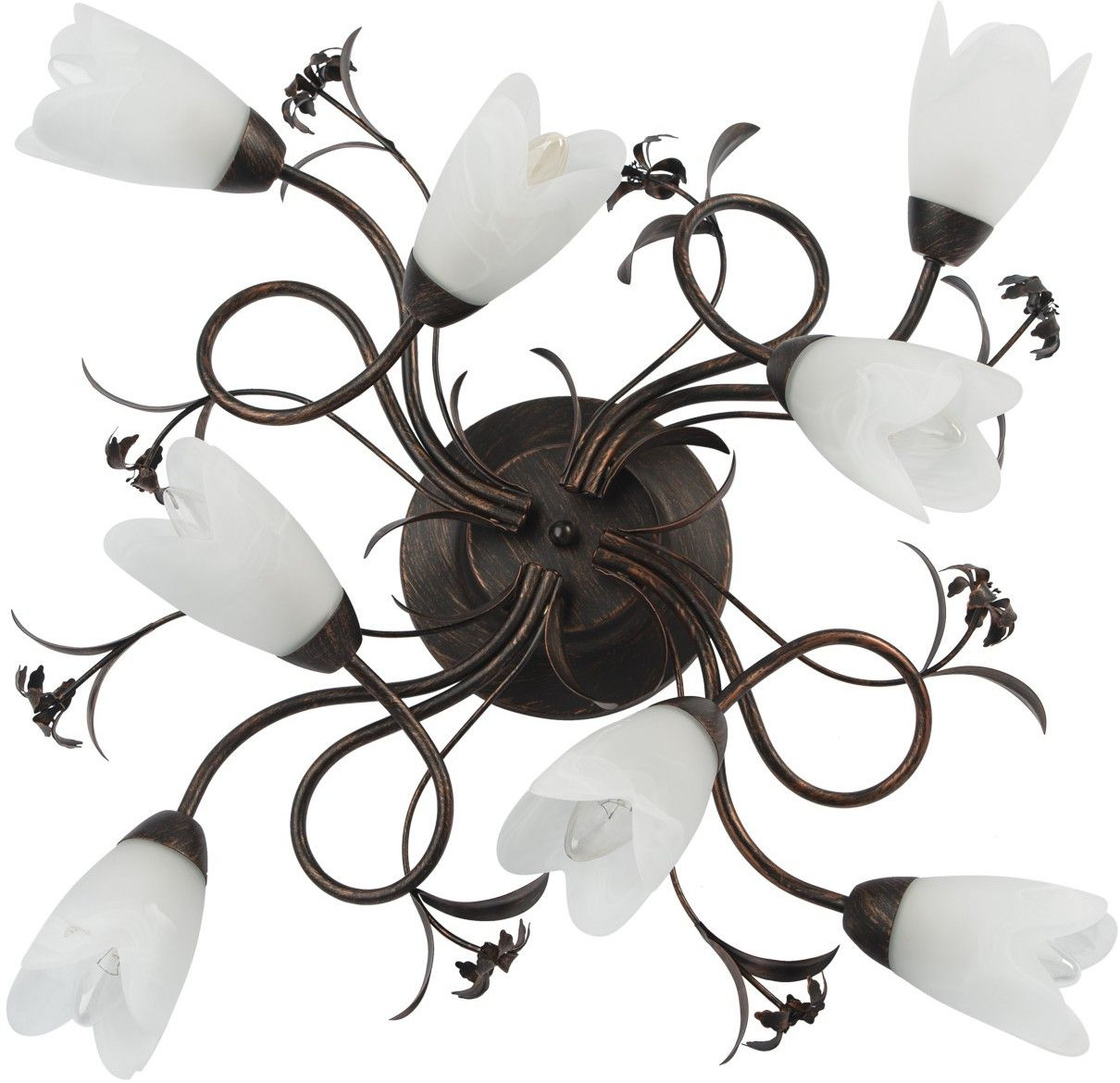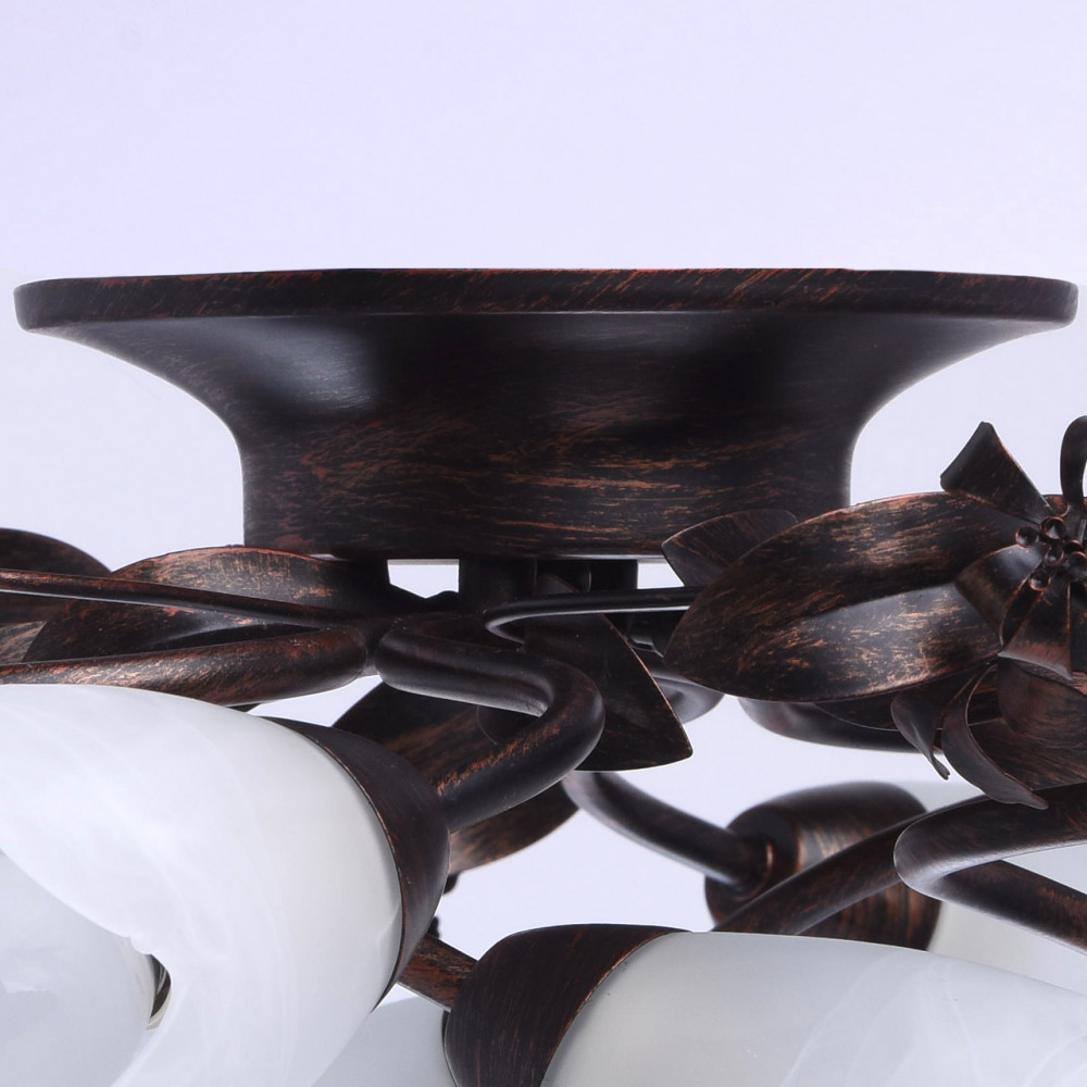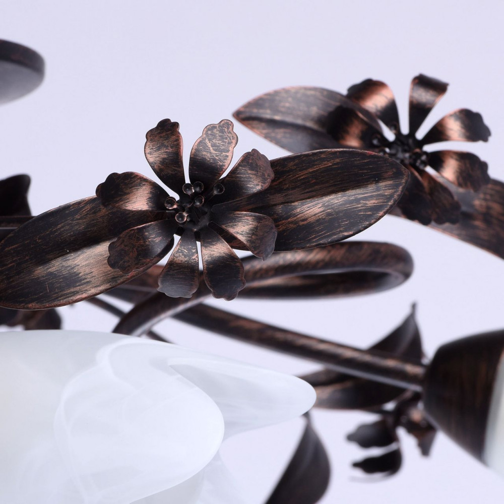 MW-Light ЛюстраВ данный момент этот товар отсутствует в продаже. Возможно, у нас найдется аналогичный или похожий товар здесь. Игривый дизайн светильника живо украсит домашний интерьер и осветит пространство большой площади. Стеклянные плафоны с молочными разводами из алебастра выполнены в виде раскрывающихся бутонов! Патинированное металлическое основание кофейного оттенка вьётся плавными линиями, на которых разместились декоративные элементы из тонко проработанного металла. Благодаря потолочной форме конструкции и светлому оттенку плафонов, светильник по достоинству оценят самые требовательные покупатели. |