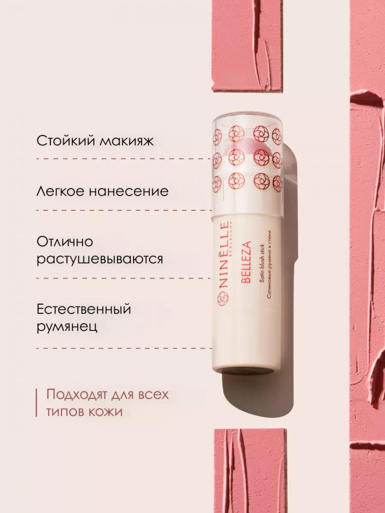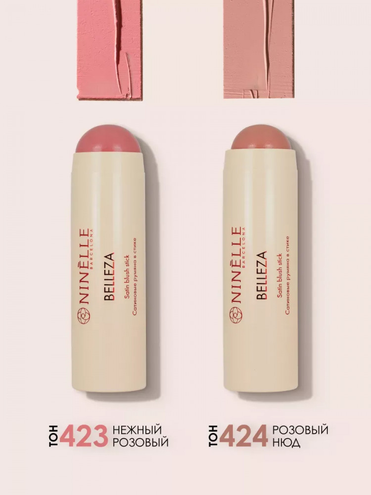 Ninelle Румяна для лица в стике сатиновые, оттенок 423 Нежный розовый