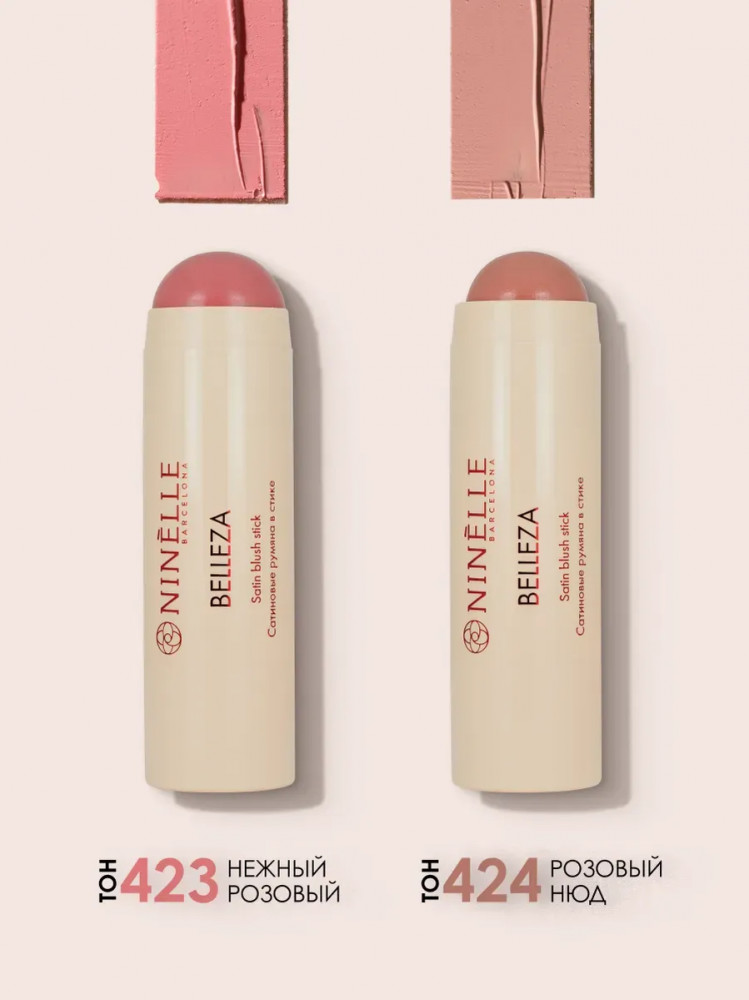 Ninelle Румяна для лица в стике сатиновые, оттенок 424 Розовый нюд