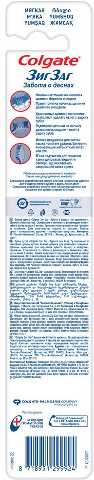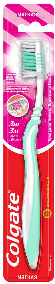Colgate Щетка зубная «Зиг заг забота о деснах»-15% +21 мягкая щетина не травмирует десна подходит для чувствительных зубов хорошо чистит задняя поверхность цвет