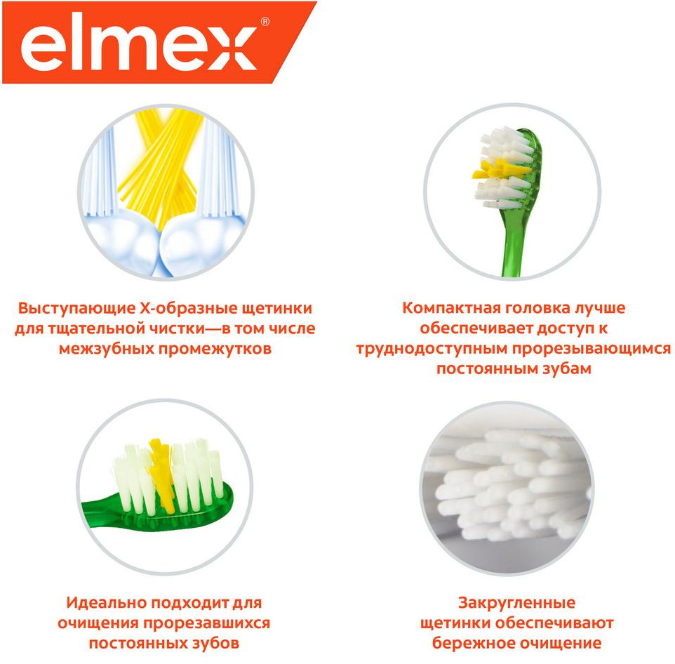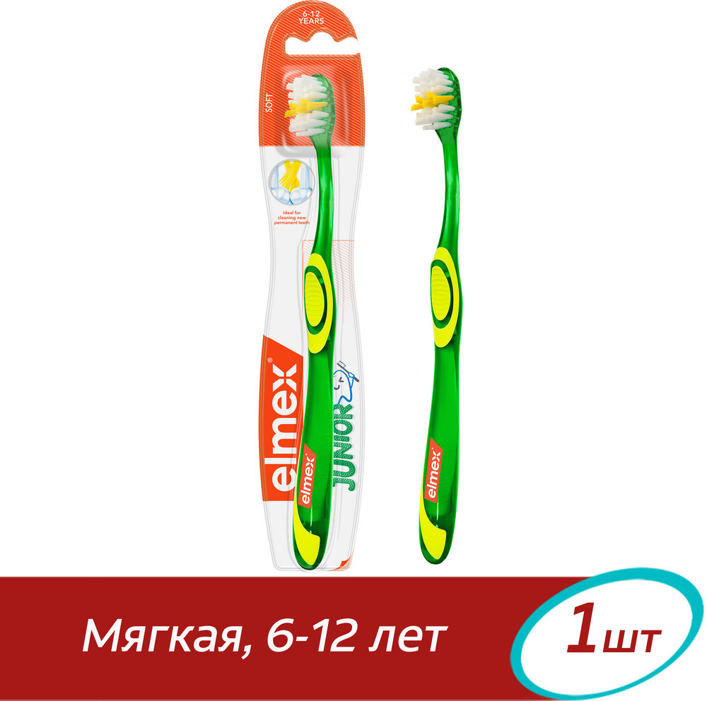 Elmex Щетка зубная мягкая «Джуниор»+81 качество эргономика жесткая щетина режет десна