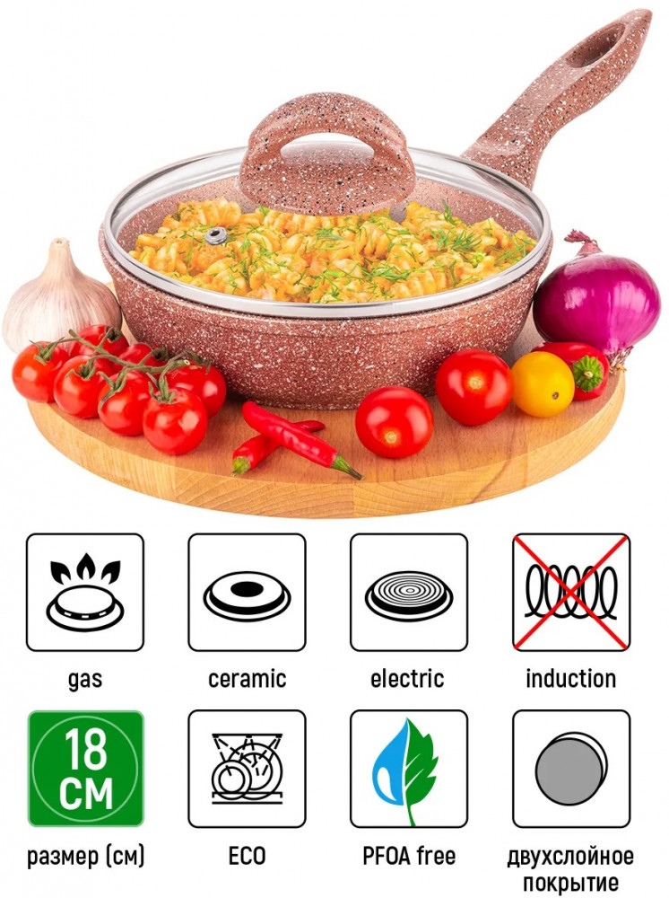 Elan Gallery Сковорода глубокая с крышкой «Бронза»