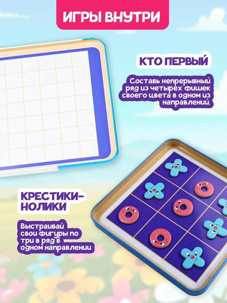 💳 Оплатить за товар можно при получении 🇰🇿 Есть бесплатная доставка по Казахстану 🎁 Копите бонусы с каждой покупки Перед Вами сразу две увлекательные настольные игры – «Кто первый» и «Крестики-нолики». Играть можно как вдвоем, так и небольшой компанией. |