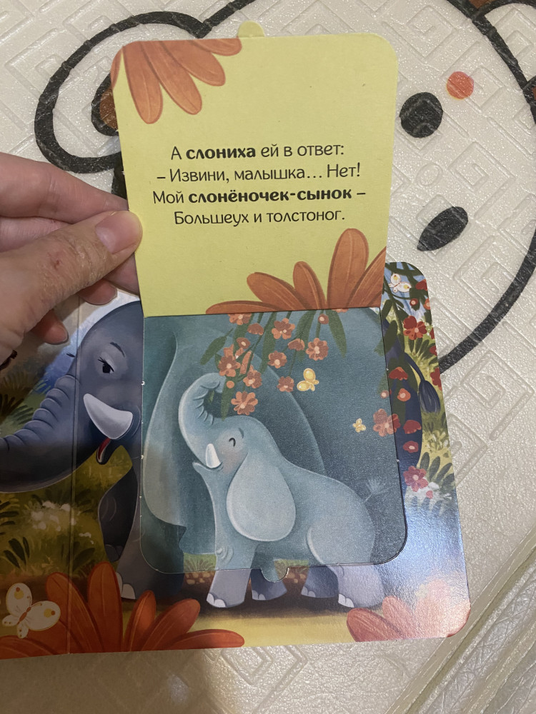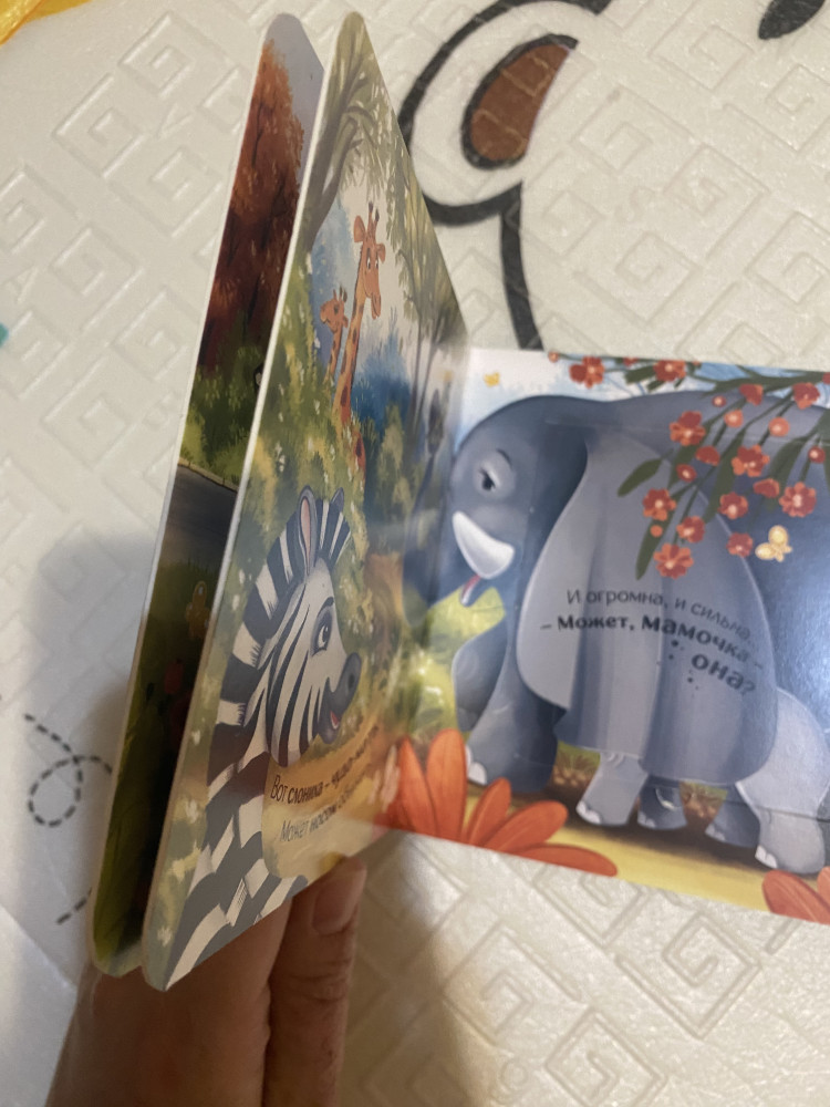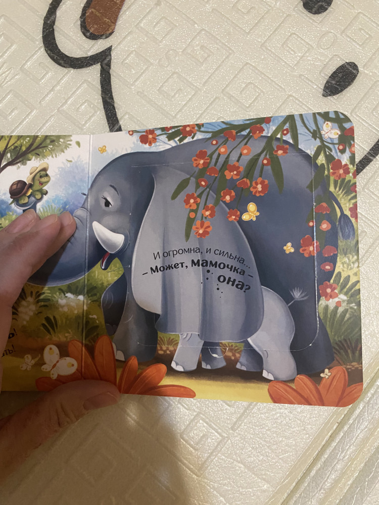 Маленькая, легкая книга, как раз для малышей. Дочке 10 месяцев, пока только слушает и рассматривает, дальше наверное будет сама открывать окошки. История интересная в книге. Картон плотный, но можно порвать.