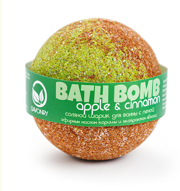 Savonry Шарик соляной для ванн с пеной с экстрактом маслом корицы и экстрактом яблока