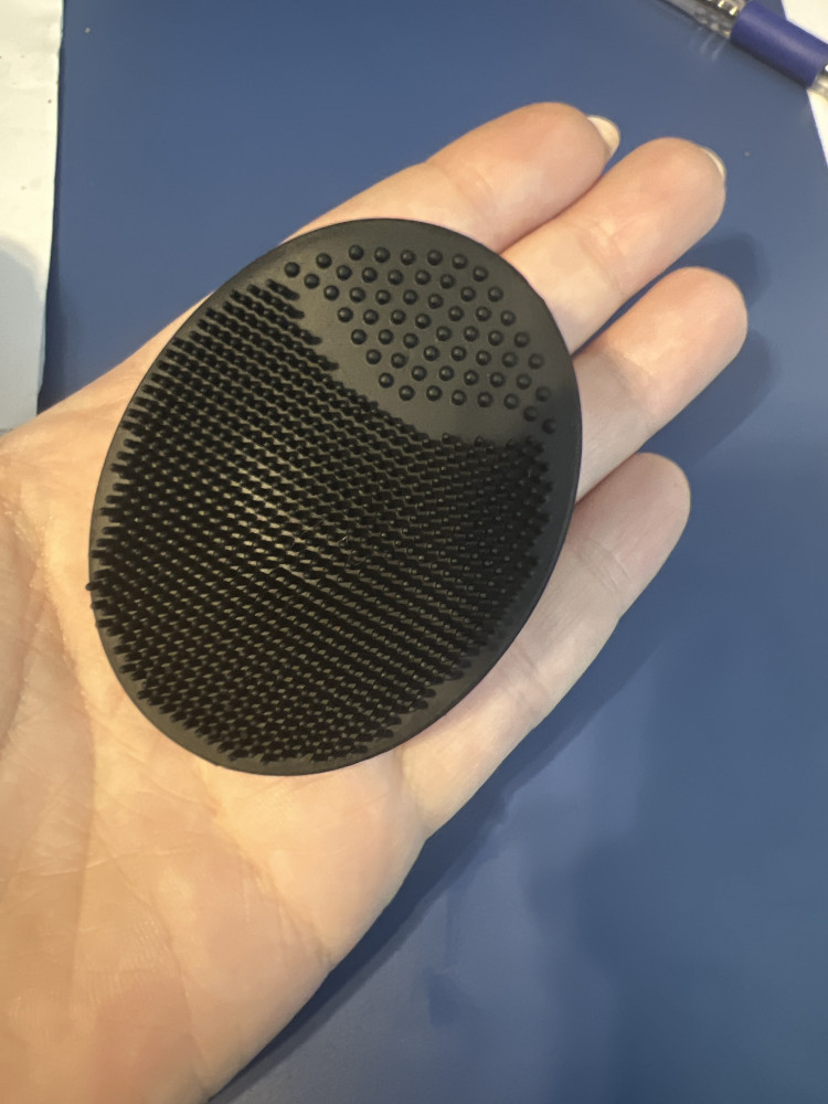 Отличная щеточка,небольшая,но мне такая и нужна.удобно держать в руках.кожу не травмирует .советую
