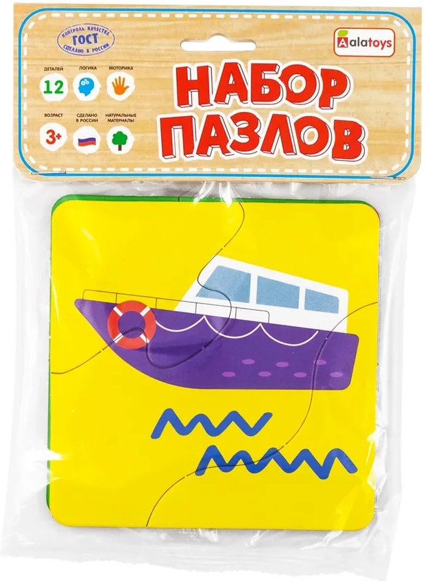 Alatoys Набор пазлов «Транспорт»качество В данный момент этот товар отсутствует в продаже. Возможно, у нас найдется аналогичный или похожий товар здесь. Пазлы — популярная развивающая игрушка. Набор картонных пазлов от Алатойс состоит из 4 красочных фигур транспортных средств, поделенных на 3 части различными способами. Задача для ребёнка — собрать целую картинку, применяя логику и мелкую моторику. В комплекте такие фигурки, как корабль, машина, экскаватор и вертолет. |