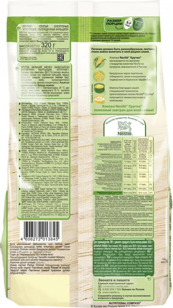 Кукурузные хлопья Хрутка производятся по высоким стандартам качества Nestlé из кукурузы, выращенной в России, без красителей и консервантов! |