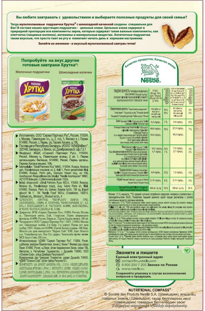 Кукурузные хлопья Хрутка производятся по высоким стандартам качества Nestlé из кукурузы, выращенной в России, без красителей и консервантов! |