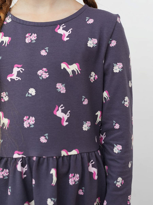 Платье с отрезной юбкой для стильных девочек. Выполнено из трикотажной кулирки. Юбка на сборке, горловина платья округлой формы. Рукав длинный. Вашей девочке наверняка понравится!