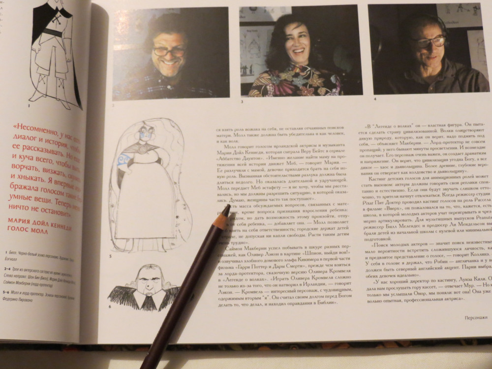 Такой толстый и содержательный артбук, столько картинок, что не знаю сколько надо времени, чтобы всё внимательно рассмотреть. Рисунки обалденные, плюс вся кухня работы над мультфильмом, очень подробно! Бумага мелованная, печать отличная. Большой недостаток, что артбук рассчитан на более крупный размер, хоть он и не маленький, но всё же размер шрифта и картинок очень мелкий. Если большие рисунки можно спокойно рассмотреть, то маленькие только с лупой. И текст так же, неудобно читать, слишком мелко.