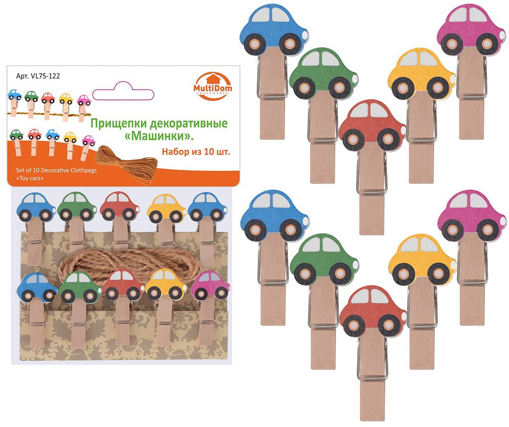 Мультидом Трейдинг Набор декоративных прищепок «Машинки»-20% +30 окраска склейка дизайн размер