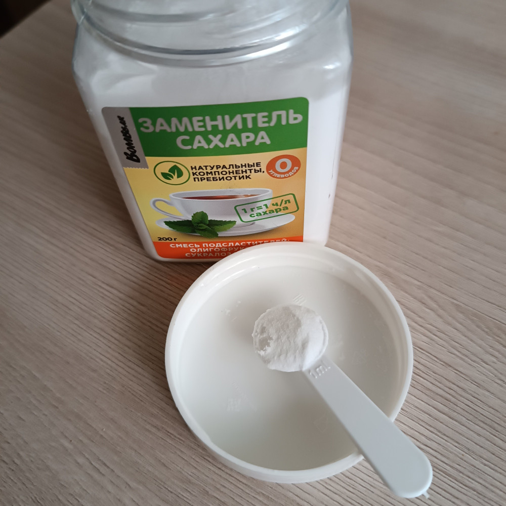 Очень хороший сахарозаменитель. Лично для меня сладкий, одной мерной ложки хватает на стакан чая, кофе. У меня сахарный диабет, от сахара отвыкла давным давно. Растворяется быстро, очень мелкая фракция, подсластитель практически пылеобразный. Те кто употребляет сахар и не привык к таким сахарозаменителям, могут почувствовать некий специфический привкус, который даёт стевия. Важная составляющая, что в этом сахарозаменителе нет эритрита. Потребление эритрита на постоянной основе может вызывать образование тромбоза, приводить к инсультам, инфарктам. Стевия помимо того, что имеет низкий гликемический индекс, полезна. Главное достоинство это высокая сладость без калорий. При регулярном применении улучшается пищеварение, нормализуется артериальное давления и снижается риск развития кариеса. Польза сукралозы состоит в том, что она является безопасным заменителем сахара, имеет нулевой гликемический индекс, не влияет на уровень сахара и инсулина в крови, что для больных сахарным диабетом очень важно. Но и для обычных людей, следящих за своим здоровьем, а так же весом, стоит обратить внимание на этот сахарозаменитель. Можно использовать для любого приготовления пищи, для смузи, выпечки и т.д. Мне все понравилось и вкус, и сладость, и форма выпуска в порошке, в герметичной баночке. Удобно хранить и дозировать. Купила с большой скидкой, спасибо большое.