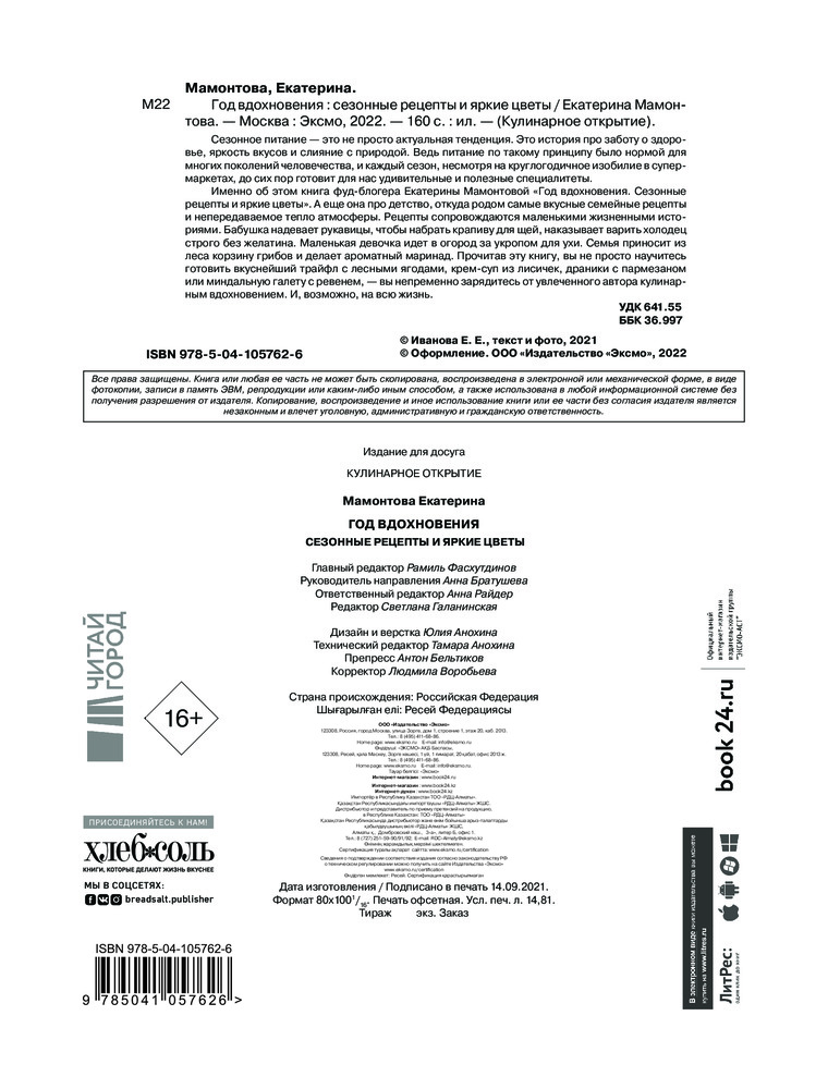 Год вдохновения. Сезонные рецепты и яркие цветыВ данный момент этот товар отсутствует в продаже. Возможно, у нас найдется аналогичный или похожий товар здесь. Серия: Кулинарное открытие Сезонное питание — это не просто актуальная тенденция. Это история про заботу о здоровье, яркость вкусов и слияние с природой. Ведь питание по такому принципу было нормой для многих поколений человечества, и каждый сезон, несмотря на круглогодичное изобилие в супермаркетах, до сих пор готовит для нас удивительные и полезные специалитеты. |