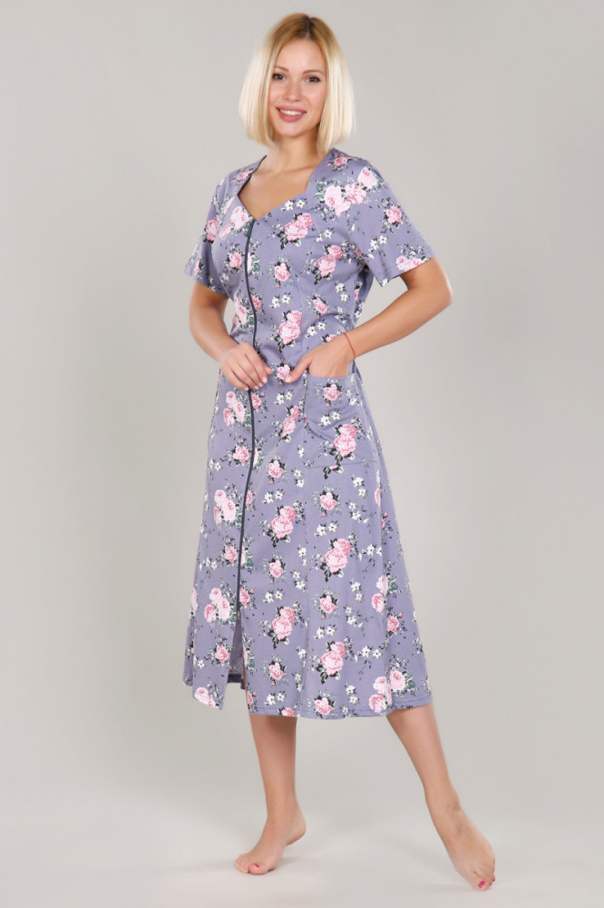 Миленький халатик. Приятная ткань. Яркий. Качественно сшит. Что радует, это особо ценно для аллергиков, верхняя часть молнии не касается тела.