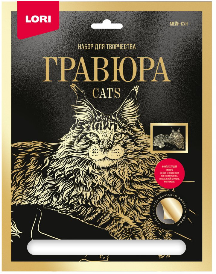 Гравюра — особый вид графического искусства. Сцарапывая верхний слой гравюры специальным штихелем, входящим в набор, ребенок может самостоятельно создать настоящее произведение искусства и почувствовать себя гравером. Готовую гравюру можно вставить в упаковку-рамку.