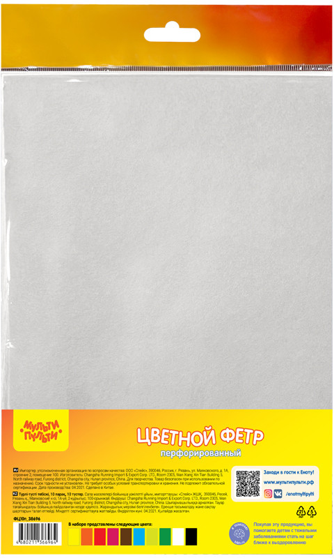 💳 Оплатить за товар можно при получении 🇰🇿 Есть бесплатная доставка по Казахстану от 1 дня 🎁 Копите бонусы с каждой покупки Серия: Приключения Енота Набор цветного мягкого фетра «Мульти-Пульти» отлично подойдет для творческих работ, аппликаций и различных поделок. Перфорированная поверхность позволяет использовать листы как для интересного оформления, так и для шитья по перфорированным отверстиям. В наборе представлена большая палитра из 10 цветов. |