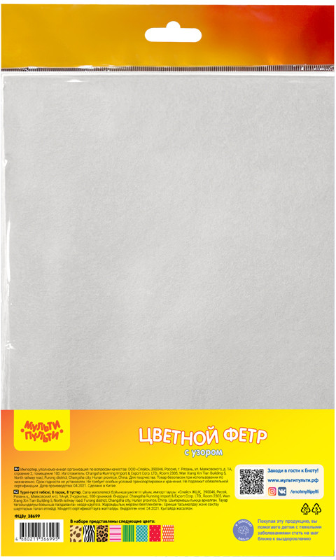 Мульти-Пульти Фетр цветной с узором «Ассорти»В данный момент этот товар отсутствует в продаже. Возможно, у нас найдется аналогичный или похожий товар здесь. Серия: Приключения Енота Набор цветного мягкого фетра «Мульти-Пульти» отлично подойдет для творческих работ, аппликаций и различных поделок. Принтованные поверхности материала позволят реализовать самые яркие поделки. В наборе представлена палитра из 8 цветов. |