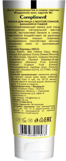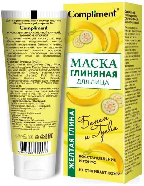 Compliment Маска для лица с желтой глиной «Банан и гуава»