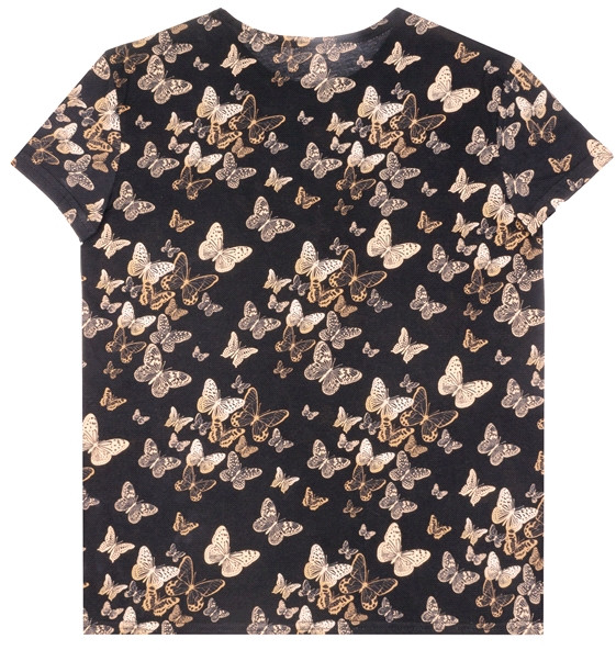 Футболка на фото выглядит эффектно, кажется, что тиснение бабочки с позолотой, на самом деле очень простенькая, бабочки просто серенькие, в общем не оправдала моих ожиданий, но это мое субъективное мнение. Пришлось вернуть. Флипу спасибо за доставку и понимание.