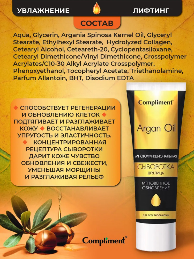 Compliment Cыворотка для лица многофункциональная-20% +44 легкая консистенция освежающий эффект для зрелой кожи раздражение