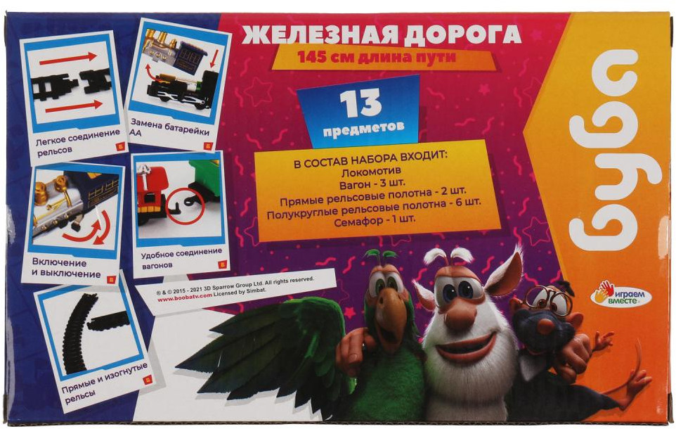 💳 Оплатить за товар можно при получении 🇰🇿 Есть бесплатная доставка по Казахстану от 1 дня 🎁 Копите бонусы с каждой покупки Серия: Буба Железная дорога «Буба» ТМ «Играем вместе» станет отличным подарком для маленьких поклонников мультсериала про весёлого домового: |