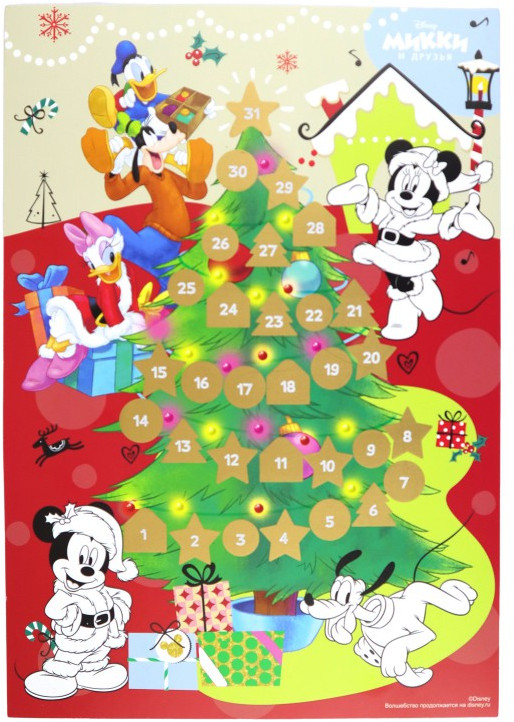 ND Play Адвент-календарь. Раскраска «Микки и друзья»В данный момент этот товар отсутствует в продаже. Возможно, у нас найдется аналогичный или похожий товар здесь. Серия: Минни и Микки Маус Адвент-календарь, раскраска с заданиями под стирающимся слоем. Лист календаря размером 29×24,5 см на магнитной основе: его легко прикрепить к холодильнику или магнитной доске. Как превратить ожидание Нового года в увлекательную игру, окунуться в атмосферу праздника и в полной мере подготовится к его приближению? Повесь красивый адвент-календарь, раскрась любимых героев и, начиная с 1 декабря, стирай по одному золотому кружочку в день — там тебя ждут сюрпризы, увлекательные задания и советы, как весело провести день. (Для некоторых заданий могут понадобиться дополнительные материалы, которые есть дома у каждого: бумага, фломастеры, ножницы). А когда сотрешь верхушку-звезду на елке, наступит Новый год! Календарь-раскраска станет интересным предновогодним подарком для мальчика и для девочки. |