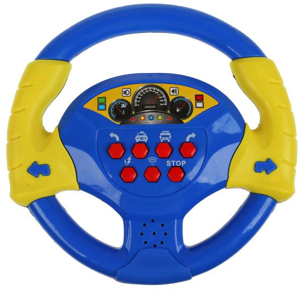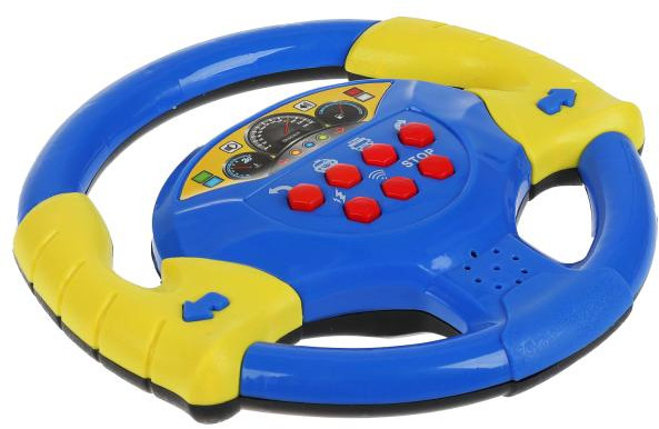 Яркий руль с разнообразными кнопками приведёт в восторг малыша. На руле присутствует реалистичное изображение спидометра. С таким рулём ребёнок сможет представить себя машинистом или водителем и отправиться в увлекательное путешествие. Компактные размеры позволяют брать игрушку с собой, в дороге будет особенно весело и интересно — малыш будет помогать «рулить» родителям. Такая игра надолго увлечёт малыша.